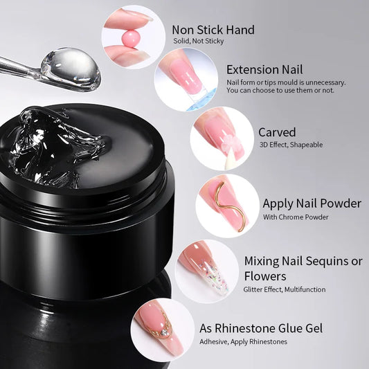 BORN PRETTY 15ml Clear Non Stick Hand Extension Gel Nail Polish 3D Multigel Carved Solid Gel For Nail Painting Carving Tools